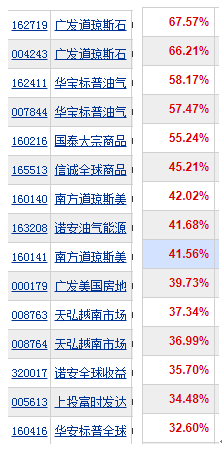 表现最佳的是广发道琼斯石油,年度盈利67.57%。
