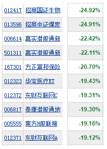 令人意外的是,排名倒数第二的是招商中证煤炭等权指数,亏损24.91%。经查是2021年9月13日新成立的基金,因此亏损就不足为奇了。