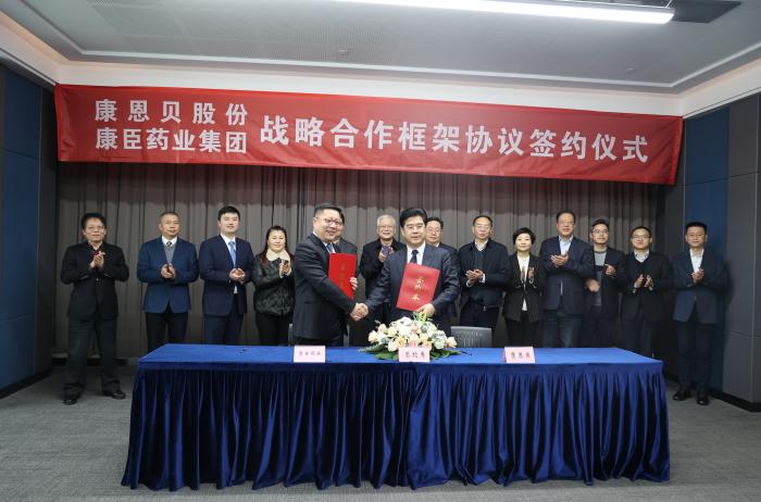 (图注:1月7日,康恩贝与康臣药业签署战略合作框架协议,图片由康恩贝提供)