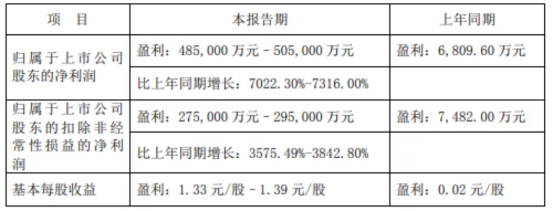 华夏能源网注意到,这与远兴能源1月6日发布的预增公告有直接关系:公告预计,2021年公司净利润约为48.5亿元–50.5亿元,同比增长7022.30%-7316.00%;当期归属于上市公司股东的扣除非经常性损益的净利润27.5亿元–29.5亿元,同比增长3575.49%-3842.80%。