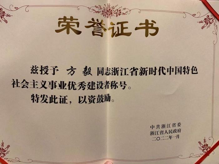 每日互动方毅荣获浙江省新时代中国特色社会主义事业优秀建设者称号