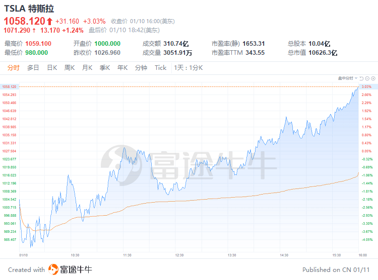 高盛分析师马克·德莱尼周一将特斯拉(TSLA.US)加入其2022年「首选股票」名单,维持对该股的「买入」评级,并将其目标价从1125美元上调至1200美元,因该公司「第四季度交付强劲」,并认为这是今年和明年销量进一步增长的信号。他还提到了特斯拉在硬件和软件方面的垂直整合、充电站生态系统,以及在太阳能和存储领域的增长潜力。截至收盘,特斯拉涨超3%。
