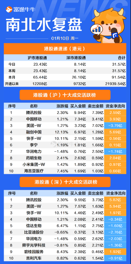 南向资金今日净买入31.57亿港元,连续4日净买入。腾讯控股、融创中国、中国移动分别获净买入8.38亿港元、5.69亿港元、3.59亿港元。南下资金已连续4日净买入腾讯,累计45.28亿港元。另一方面,净卖出额居首的是华润电力,净卖出金额为3.77亿港元。