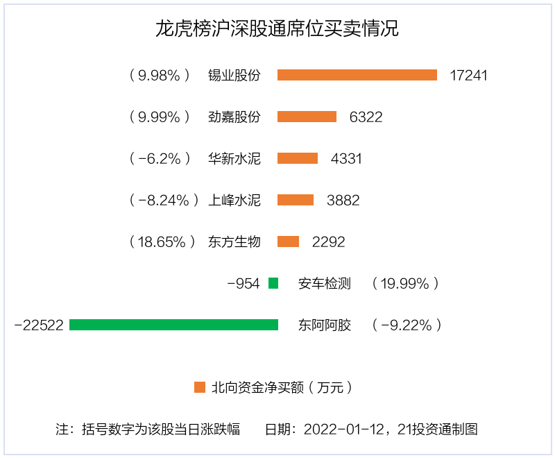 1月12日,北向资金参与龙虎榜中的个股共有7只,合计净买入1.06亿元。其中沪股通净买入2 股,合计净买入6623.11万元;深股通净买入3 股,净卖出2 股,合计净买入3968.26万元。