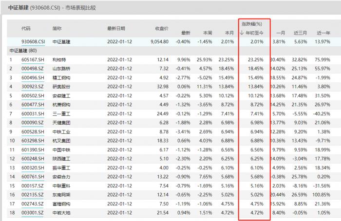 截至12日收盘,年初至今基建板块上涨2.01%。1月6日,基建工程指数大涨超4个点,7日、10日连续两个交易日继续拉升。近期两个交易日虽略有回调,但幅度不大。