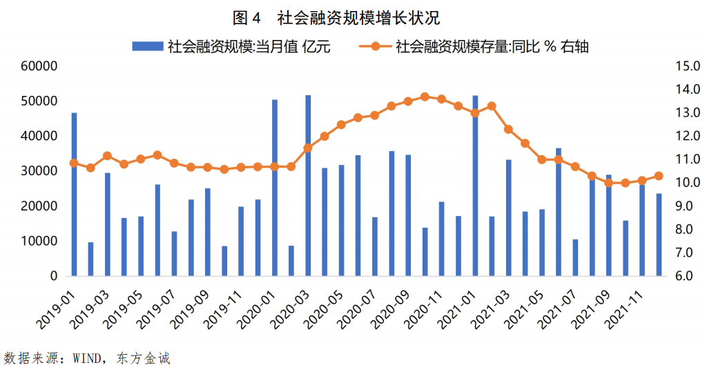 展望未来,伴随宏观政策持续向稳增长方向微调,特别是房地产融资环境回暖,2022年1月信贷和社融增速有望同步加快,特别是信贷低迷过程将会扭转——我们预计2022年1月信贷“开门红”特征将更为明显。另外,2022年地方政府专项债额度恢复提前下达,一季度社融增速也会持续加快。我们判断,后续宽信用进程将从政府融资发力转向企业和政府融资双轮驱动。这将为今年上半年稳定宏观经济大盘,对冲需求收缩、供给冲击、预期转弱三重压力提供重要支撑。