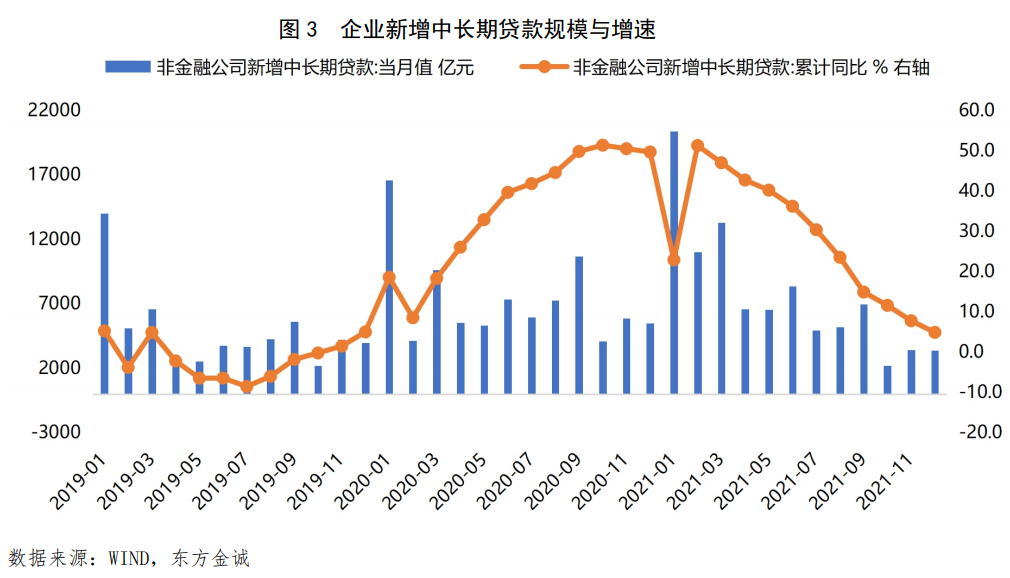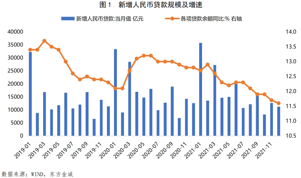 事件:2022年1月12日,央行公布数据显示,2021年12月新增金融机构人民币贷款1.13万亿,环比少增1400亿,同比少增1234亿;12月末人民币贷款余额同比增速为11.6%,分别比上月末和上年同期低0.1个和1.2个百分点。