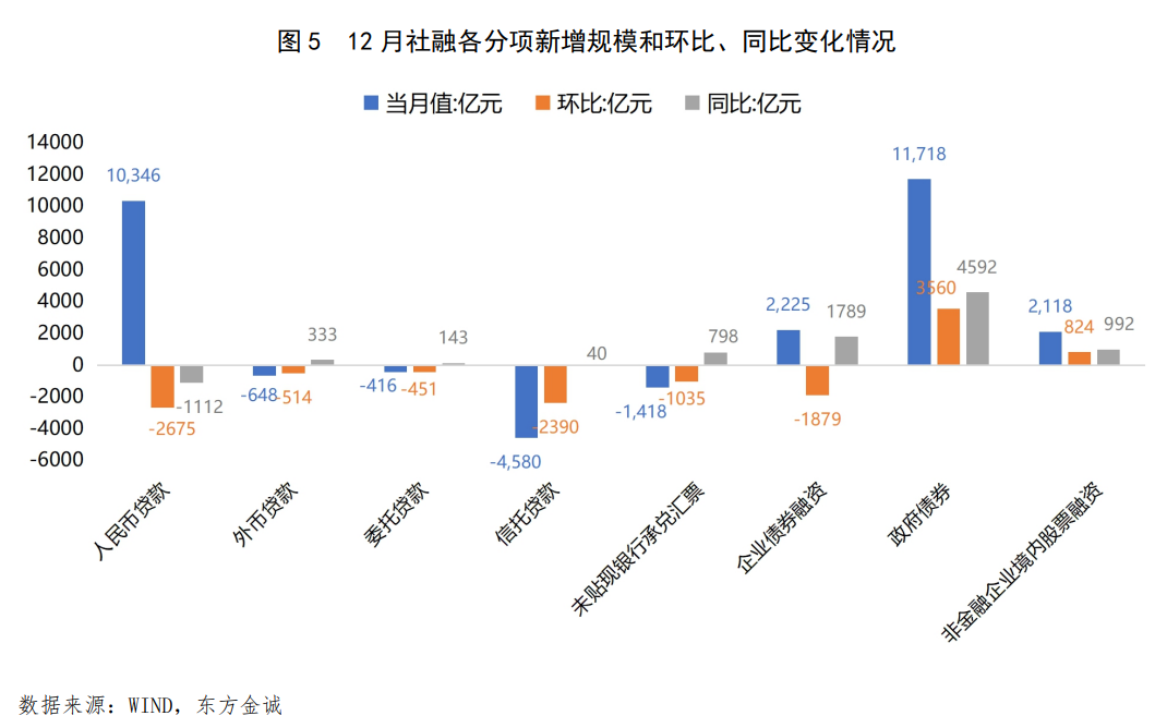 整体上看,12月金融数据显示当前宽信用进程有所加快,近期主要由政府债券融资驱动;经济下行压力较大背景下,信贷供需两端都较为低迷,结构持续恶化。这意味着12月央行全面降准、1年期LPR报价下调确有很强的针对性,针对实体经济的逆周期调控需要持续发力。