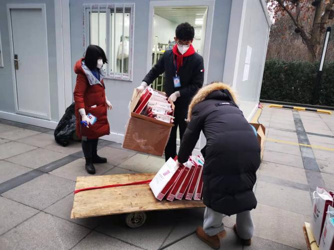 “扫楼”结束,时间已到了下午5点,他们四人又马不停蹄前往通达大厦,逐户分发健康礼包,搬运防疫物资,继续开展志愿服务工作......