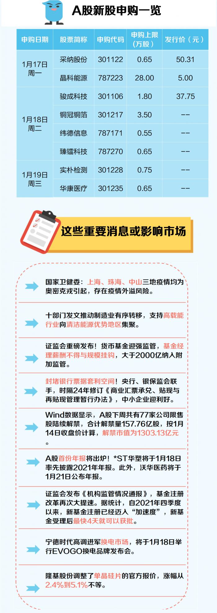 未来一周(1月17日-1月23日)看点: