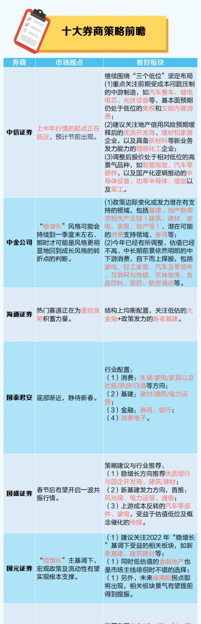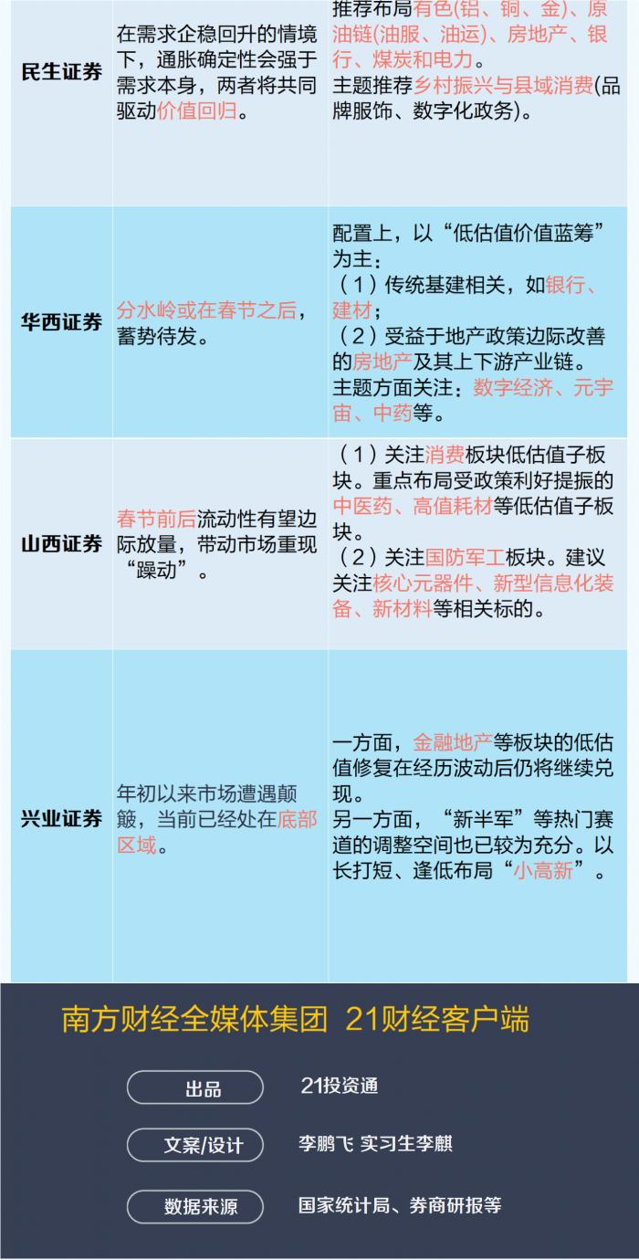 多家券商看好春节前后行情。中信证券认为,上半年行情的起点正在临近,预计节前出现;华西证券则认为,分水岭或在春节之后,蓄势待发。
