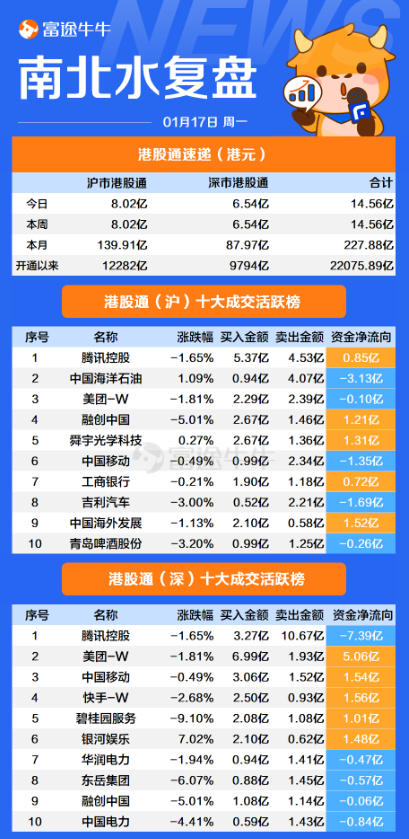 南下资金已连续10日净买入美团,累计约53.804亿港元。