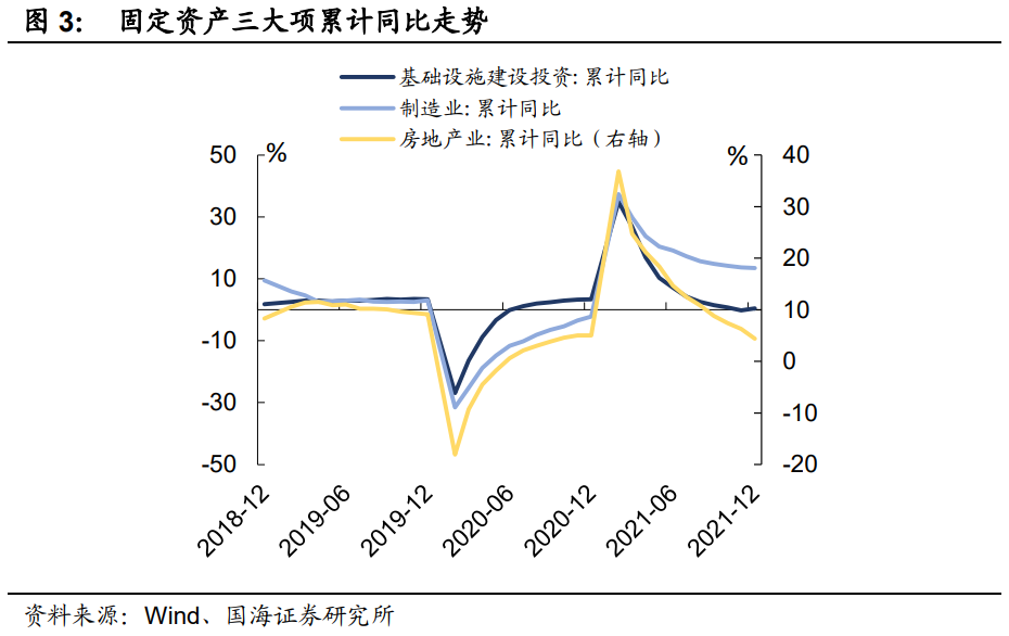 2021年经济整体平稳收官,展望2022年,我们的观点依旧是,经济“下限看地产,上限靠基建”,基建仍是2022年经济的主要抓手。在静候基建发力的同时,如何做好“稳地产”、“稳就业”以及“稳消费”同样是短期内值得关注的问题。