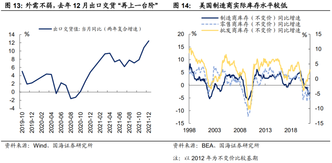 2)外需“不弱”叠加补库需求,边际支撑国内生产。外需“退潮”基本已是普遍共识,但整体需求不弱的格局下,对我国出口仍有边际上的支撑,进而带动生产。与此同时,美国制造商库存在剔除价格因素后,仍处于历史低位,补库需求也将继续支撑国内生产活动的开展。