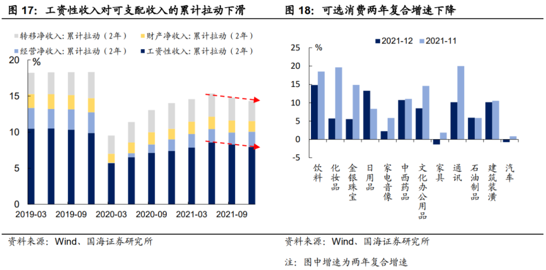 3)消费疲软的背后是若隐若现的就业压力。四季度全国居民人均可支配收入增速略有下降,具体拆分来看,工资性收入的拉动作用下降是可支配收入增速下滑的主要因素。我们认为,这背后依旧反映了目前存在的一定就业压力。