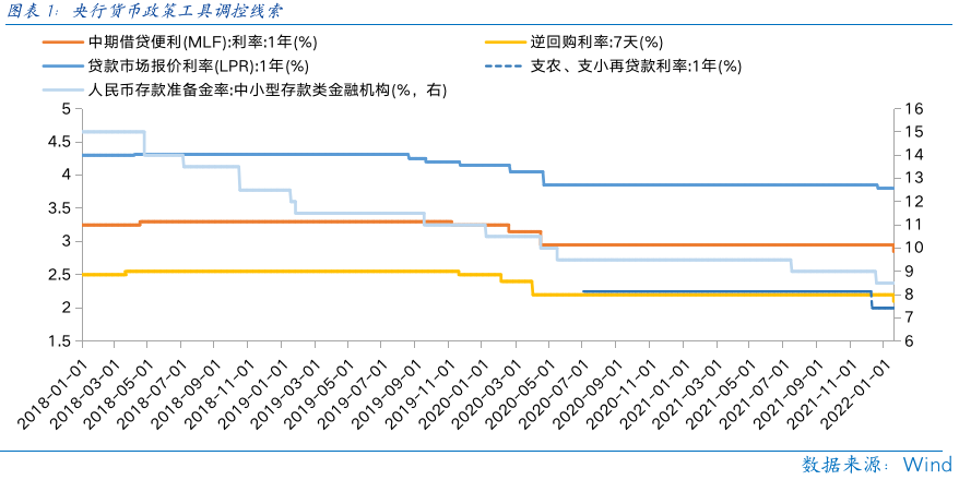 2022年1月17日央行开展7000亿元1年期中期借贷便利(MLF)操作和1000亿元7天期公开市场逆回购操作,中标利率分别为2.85%、2.10%,MLF和OMO均下降10个基点。