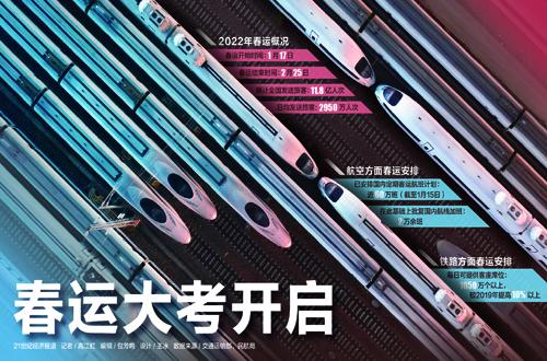2022年春运始于1月17日,至2月25日结束,为期四十天。交通部预计今年春运全国发送旅客11.8亿人次,日均2950万人次,较2021年同比增长35.6%,较2020年同比下降20.3%,较2019年同比下降60.4%。川渝西南地区成为春运旅客主要流入目的地。受冬奥冰雪热影响,东北地区出行需求增长显著。