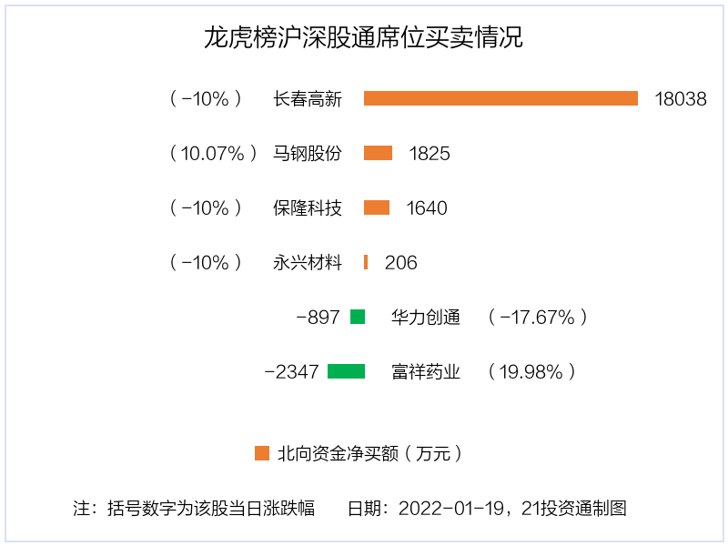1月19日,北向资金参与龙虎榜中的个股共有6只,合计净买入1.85亿元。其中沪股通净买入2 股,,合计净买入3465.16万元;深股通净买入2 股,净卖出2 股,合计净买入1.5亿元。