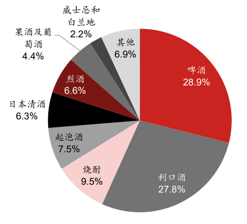 (2018 年日本人饮酒构成,有研究表明中国酒饮结构发展正趋向于日本市场)