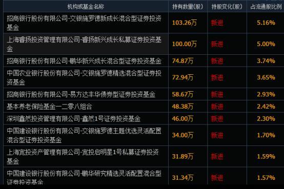 到了三季度,3只交银施罗德系基金、2只鹏华系基金、1只易方达系基金同时进入名单中,持股数量皆超31万股。