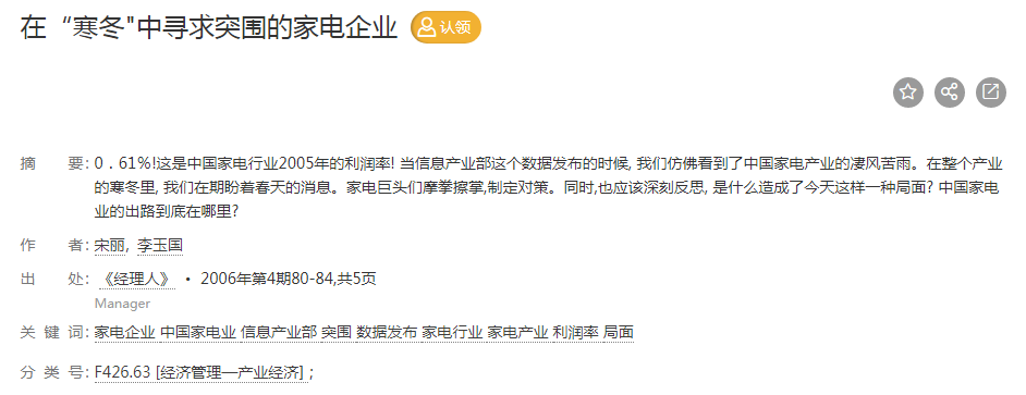 · 2005年,家电行业利润率跌至0.61%冰点,《经理人》杂志刊文称中国家电产业迎来困境。