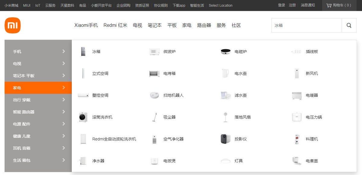 (图源:小米商城的家电页面)