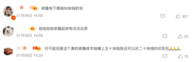 比如在消极观点中,有些网友认为这次联名很像普通的印花包,就如地摊或夜市的廉价产品。