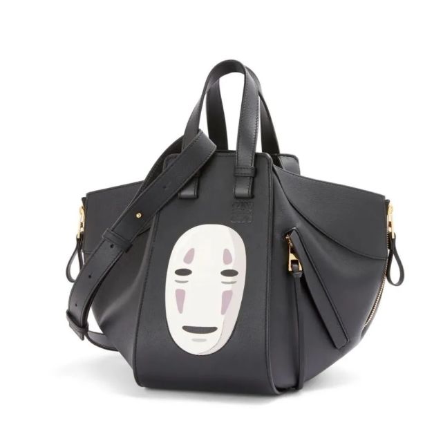 常规来说,LOEWE最出名的款式包括几何包、马鞍包、三角包等系列,每一个包款都有着非常典型的设计。但这次跨界带来的新款设计,看起来更多的只是IP元素的叠加,多选择在经典款式包身上印上IP中不同的动漫角色。