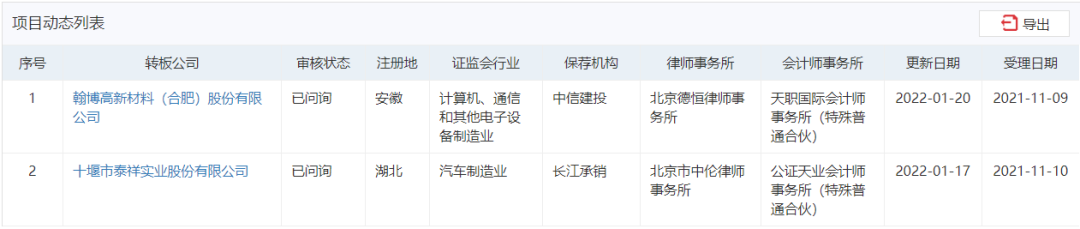 除观典防务外,北交所还有2家正在申报转板创业板的企业,分别是翰博高新、泰祥股份,目前均处于问询阶段,并已完成第一轮问询回复的披露。