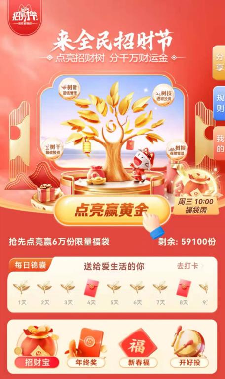 在“全民招财节”的主会场,招行全新推出基于完全客户视角的“TREE资产配置体系”,围绕活钱管理、保障管理、稳健投资和进取投资等四大主题,帮助客户构建科学理财观,并通过有趣的任务引导客户进行配置体验。