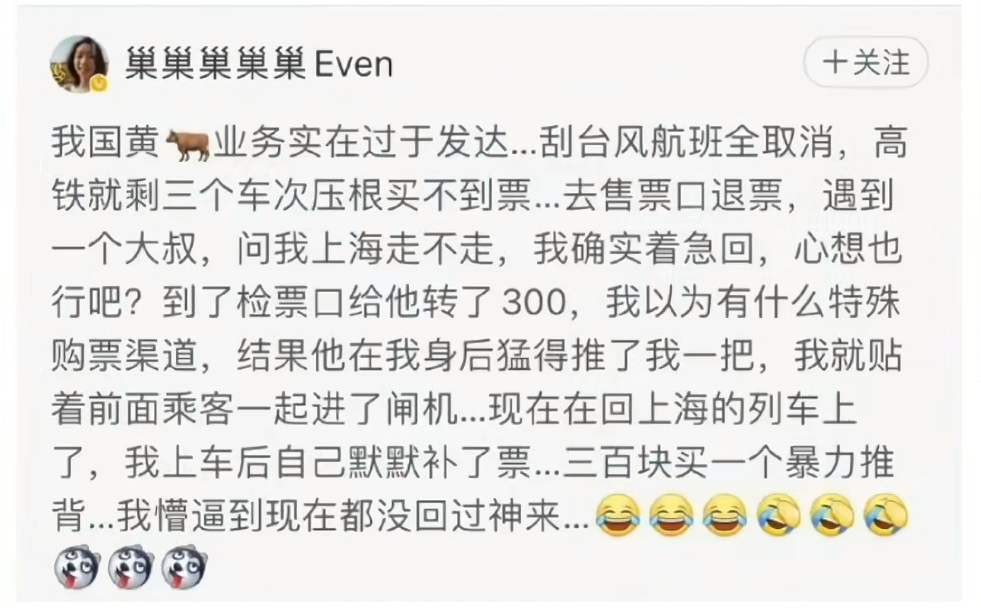 所以1.0时代的黄牛们想出了一个终极答案,他们在其它乘客验证过闸机之后直接把客户连着推进站,最高端的科技往往会败给最粗暴的逻辑,老三体了。
