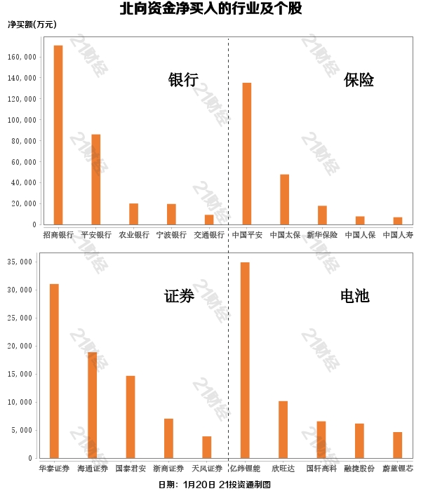 据21投资通(微信号ID:touzit21)智能监测,1月20日,北向资金净买入125.76亿元,其中沪股通净买入78.37亿元,深股通净买入47.4亿元。