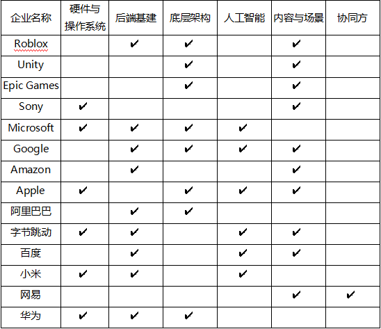 当然,我们也可以按照第五部分中提供的投资版图判断大公司在元宇宙概念里的布局情况。这里我们列举了一些公司和对其分析后的结果,供大家参考