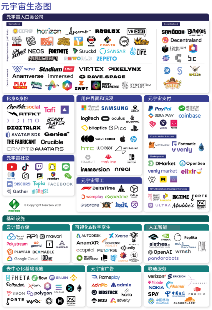 *文中部分图片来源于网络附录:元宇宙公司生态图谱2021年,Newzoom.com发布了“元宇宙生态图”。我们将图谱附在此处,供各位读者参考: