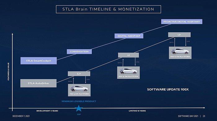 一个典型的案例是世界第四大汽车公司Stellantis集团在2021年12月举行的“软件日”上明确了“软件定义汽车”的收入数字:到2030年,集团软件收入将达到200亿欧元,届时集团将拥有3400万台联网汽车。
