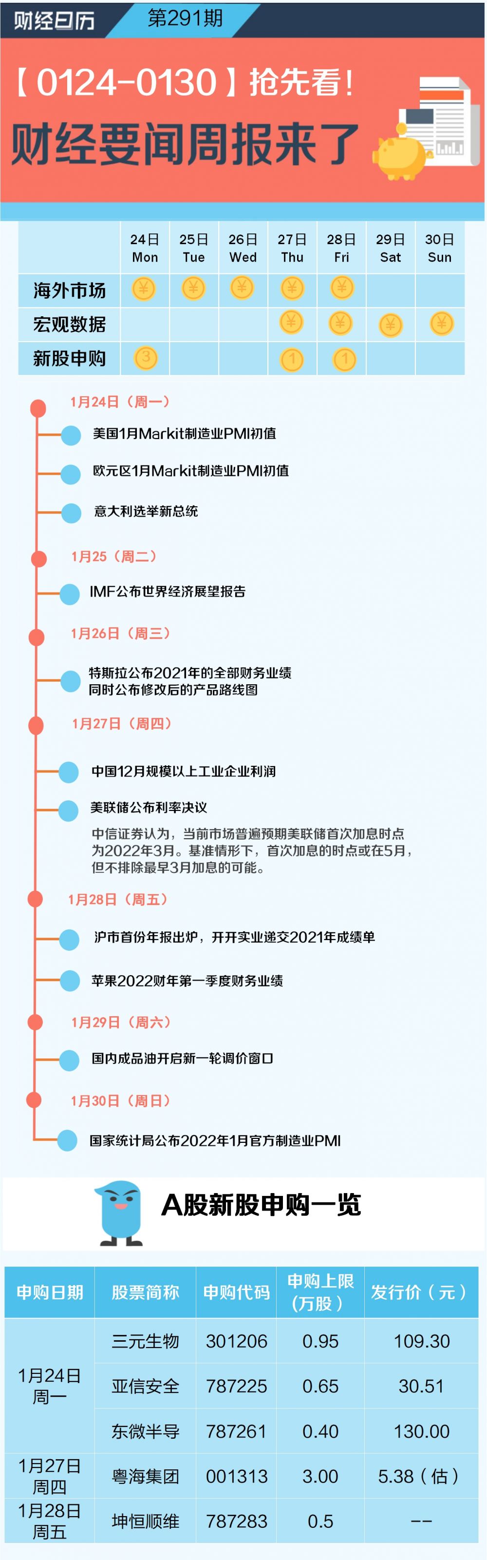 周四美联储公布利率决议;周日1月官方制造业PMI;特斯拉、苹果等巨头将公布财报。