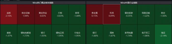 1月25日,三大指集体下跌超2%。航空相关概念板块是为数不多上涨板块,其中航空运输逆市上涨1.94%,机场板块上涨0.09%。