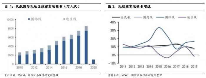 出入境旅客是我国民航客流的重要组成部分。疫情前,2019年民航国际、地区航线旅客量达到8533万人次,占当年民航旅客运输量的12.9%。2014-2019年国际线(不含地区)旅客运输量年化增速达到18.7%,明显高于国内线增速,是民航需求增长的重要推手。