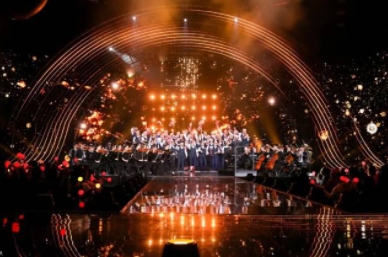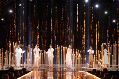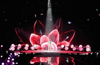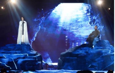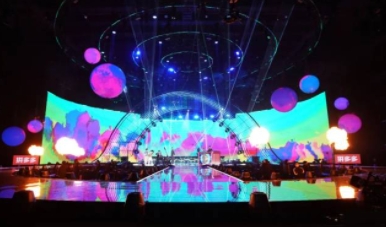 在舞美设计上,2022网络春晚大胆“开新”,将设计理念延伸至具有无限想象空间的宇宙苍穹,打造具有网络春晚独特气质的星际“开新”乐园。舞美以丝带星轨为主体,巨幅环形屏幕配合多个大小不一的球体,形成丰富的层次感和唯美浪漫的视觉体验。