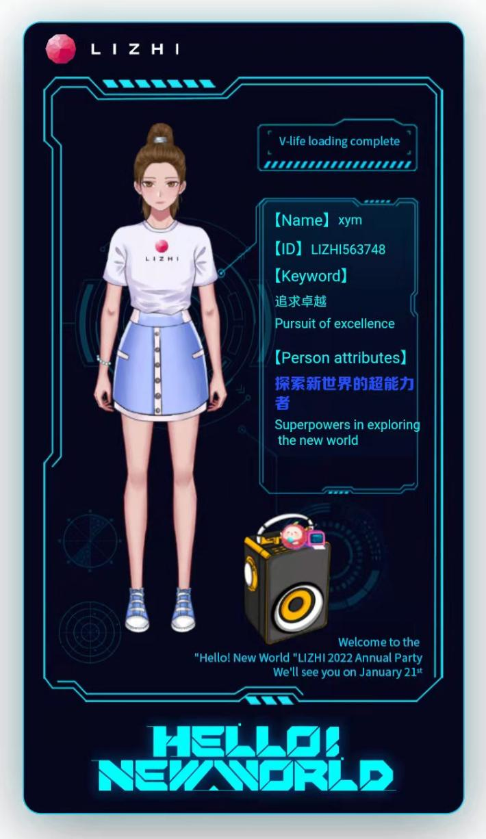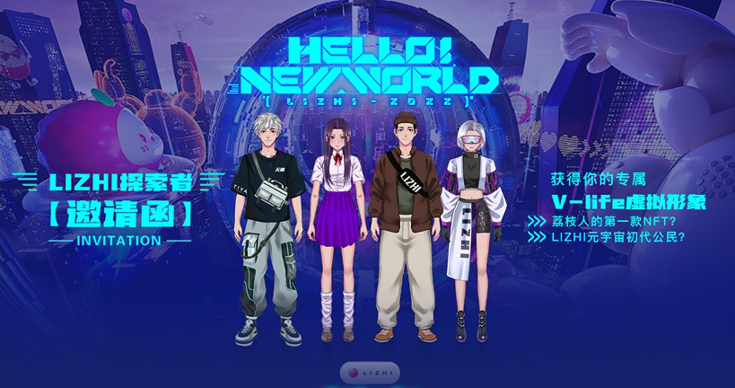 具体玩法是,接收者会提前收到荔枝发出的新春盛典邀请函H5,并在H5页面生成个人专属的V-life虚拟形象,虚拟形象加载完成后,即进入“LIZHI元宇宙”中的电子数据库。在盛典当天,有10名幸运儿收到“荔枝人的第一个NFT”。