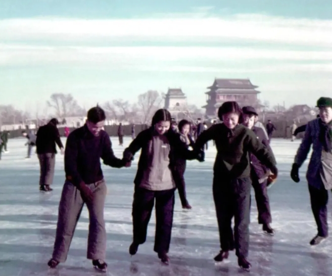 每到寒冬,滑冰爱好者就摩拳擦掌,带上冰鞋冰刀,风风火火地往什刹海赶。冰场上,有的玩速滑、打冰球,有的溜冰画葫芦、拉手跑大圈儿,有的滑冰车、跳冰上芭蕾……那时,北京每年冬季有数万人参加滑冰运动。1953年,什刹海冰场接待了7.8万人。