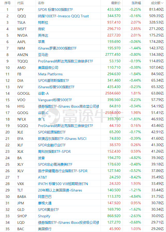 昨日美股成交额TOP20
