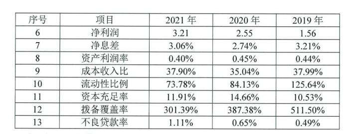 监管指标方面,截至2021年末,武汉众邦银行不良率为1.11%,较2020年末增加0.46个百分点;拨备覆盖率为301.39%,较2020年末下降85.99个百分点;资本充足率为11.91%,较2020年末下降2.75个百分点。