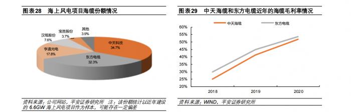 平安证券认为,海缆是海上风电的核心环节,随着海上风电项目的离岸化发展,单位海风项目的海缆需求量有望提升;同时,海缆具备较高的准入壁垒,竞争格局清晰、稳定,头部企业有望维持较高的市占份额,并享受海上风电大发展和海缆价值量提升的红利。