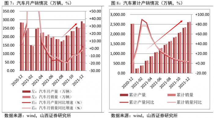 2021年4季度,随着全球芯片供应短缺改善,叠加下游需求进入春节前旺季,整车厂商产销环比提升,带动板块景气修复。