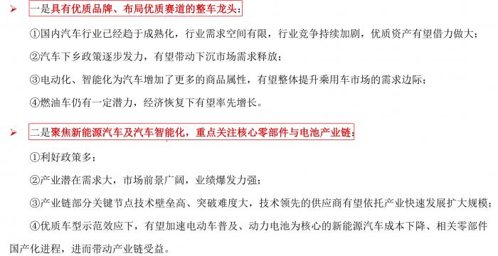 二是聚焦新能源汽车及汽车智能化,重点关注核心零部件与电池产业链。