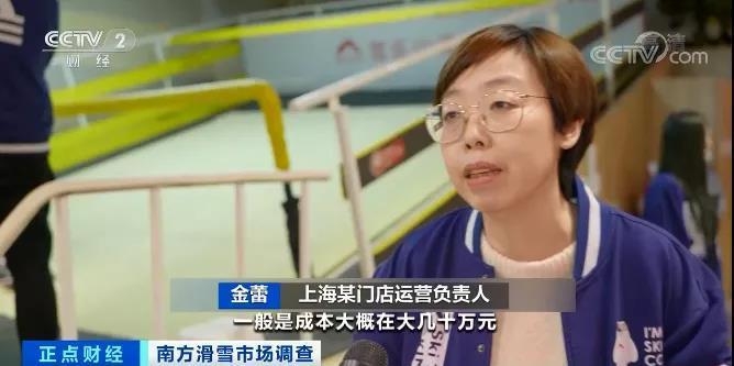上海某门店运营负责人 金蕾:一台机器的成本一般是在大几十万元,机器造雪和滑真雪最大的区别就是相对比较安全,而且比较高效。