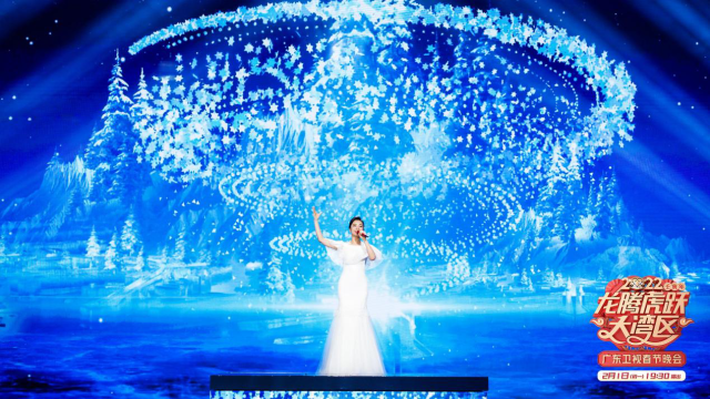 由陈思思演唱的《雪花请柬》,以中国传统文化里的“请柬”为切入点,邀请四海运动健儿共襄北京冬奥盛会。民歌加美声,行云流水般的动听演唱,在湾区春晚的舞台上再次响起,为冬奥而歌,为祖国强盛而歌。