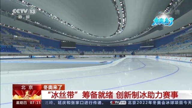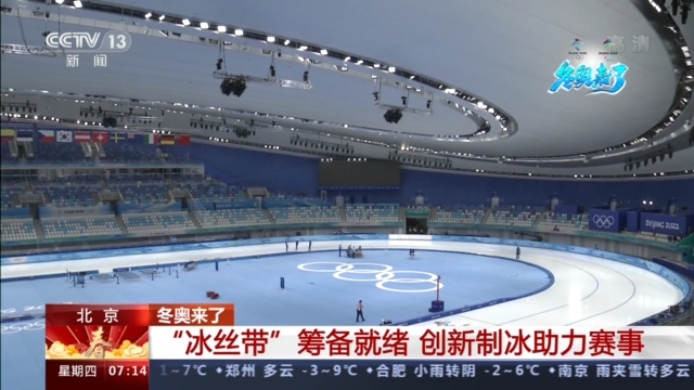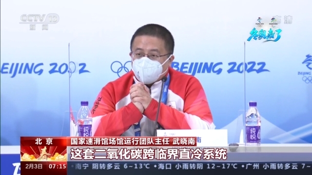 国家速滑馆场馆运行团队主任 武晓南:二氧化碳跨临界直冷系统也是冬奥历史上首次应用,有三位院士先后参与进来,给了我们很多指导,我们最后形成了这套二氧化碳跨临界直冷系统制冰的中国方案。根据选手们给出的意见不断调整,先由稍微软一点的冰一直逐渐调整,使得奥运会开赛那天乃至整个奥运期间达到一个最优状态。