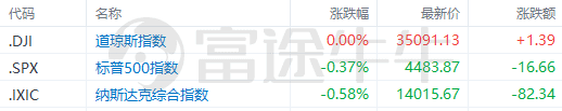 道指收平,标普500指数跌0.37%,纳指跌0.58%。